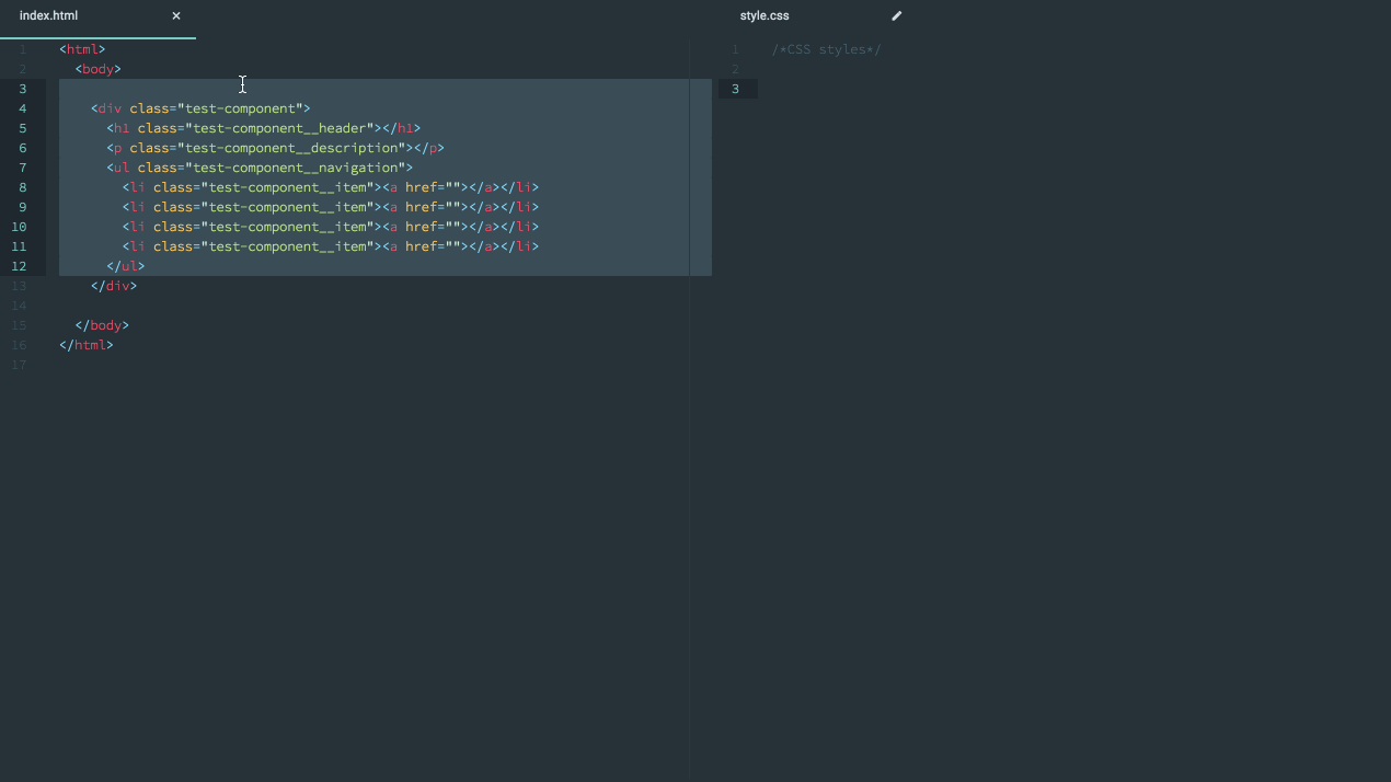 - BEM support (actually, more like a BE support for now. Modifiers support will be added if needed)
